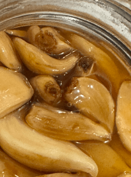 - Prepare Blend: Crush 5 garlic cloves, add 3 cloves, cover with ½ cup raw honey in a jar. Infuse 3-5 days.